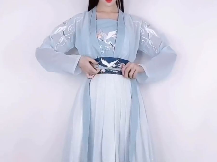 - 婴儿蓝交领衫+牛仔短裙:混搭牛仔材质,蝴蝶结腰封强化腰线,传统与现代的平衡恰到好处8。